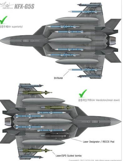 韓國公布的這組KFX-G5S戰(zhàn)機圖片中的另一關鍵技術(shù)要點是,有別于之前任何一款第五代戰(zhàn)機方案,韓國似乎在構(gòu)想KFX-G5S型戰(zhàn)機之初,就將外部掛載視作主要性能,而非像美制第五代戰(zhàn)機那樣,將外部掛載視作特殊情況下的無奈之舉。從韓國為KFX-G5S戰(zhàn)機規(guī)劃的掛載方案來看,作為輕型戰(zhàn)機的KFX-G5S,在無內(nèi)部掛載的情況下,外掛點超過10個,基本達到F-16戰(zhàn)機的水平。如果再考慮第五代戰(zhàn)機較之第四代戰(zhàn)機較大的內(nèi)部空間帶來的機內(nèi)載油優(yōu)勢,KFX-G5S型戰(zhàn)機的外掛能力應在F-16之上。
