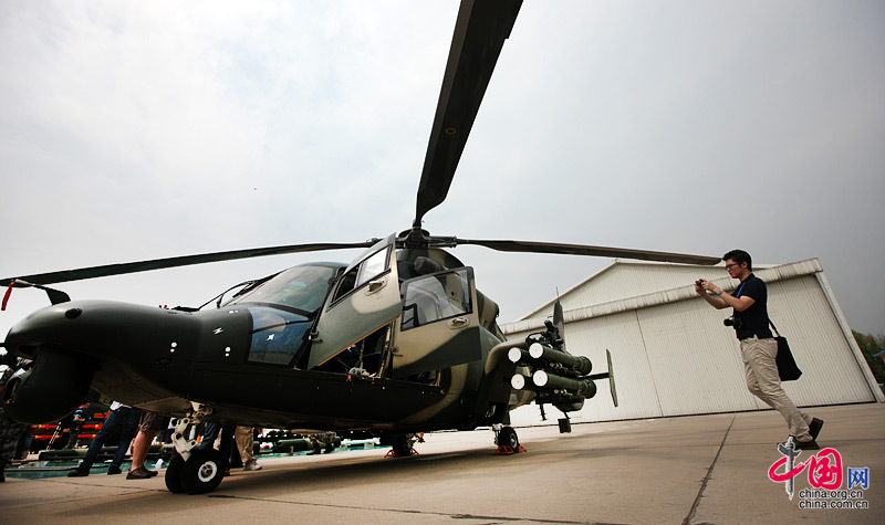 一名記者正在拍攝靜態(tài)展示區(qū)的直9-WZ武裝直升機。 攝影:中國網 楊佳