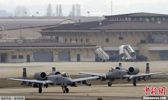 當(dāng)?shù)貢r(shí)間4月2日,位于韓國首爾以南的烏山空軍基地內(nèi),駐韓美軍戰(zhàn)機(jī)頻繁進(jìn)行起降訓(xùn)練。圖為停放在機(jī)場上的美軍A-10攻擊機(jī)。