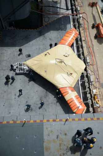 NAVAIR表示,該機(jī)將在“布什”號(hào)上進(jìn)行至少一次彈射起飛,并將執(zhí)行觸艦復(fù)飛。但是,在此輪試驗(yàn)試飛中,這架X-47B將不會(huì)在“布什”號(hào)上進(jìn)行攔阻著艦。在此之前,一架X-47B已于2013年5月4日,在馬里蘭州帕圖克森特河海軍航空站的試驗(yàn)場(chǎng)完成了首次陸基攔阻降落試驗(yàn)。在NAVAIR于5月6日發(fā)布的一份聲明中,美國(guó)海軍UCAS項(xiàng)目經(jīng)理、海軍上校杰米 恩格道爾(Capt. Jaime Engdahl)表示,將一架無(wú)人機(jī)降落在航母上,將是“無(wú)人作戰(zhàn)航空系統(tǒng)”驗(yàn)證項(xiàng)目(由諾斯羅普?格魯門公司研制的X-47B就是該項(xiàng)目的產(chǎn)物)最為非凡的成就,它將成為美國(guó)海軍十年來(lái)無(wú)人機(jī)/航母集成工作的高潮。NAVAIR的官員們表示,在確定X-47B在航母上進(jìn)行攔阻著艦的進(jìn)度計(jì)劃之前,將繼續(xù)評(píng)估在帕圖克森特河試驗(yàn)中所獲得的數(shù)據(jù)。