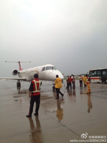 今天(7月25日)網(wǎng)友“裴裴裴裴欣[微博]”爆料稱,下午6點50分左右,咸陽機場由于突降大雨,一架海航飛機沖出跑道。