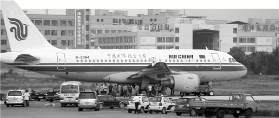 昨天中午,義烏飛往成都的國航CA4538航班滑出跑道,停在瀝青輔道上動彈不得