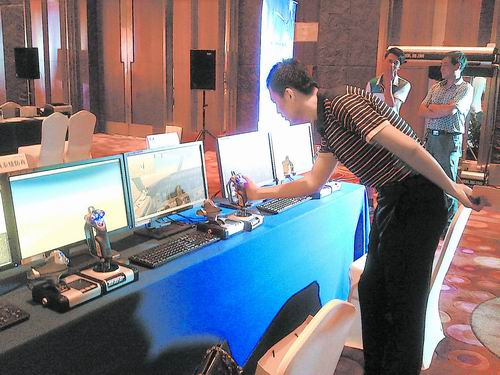 操控系統(tǒng)近年來取得長足進步。圖為觀眾體驗無人機操控
