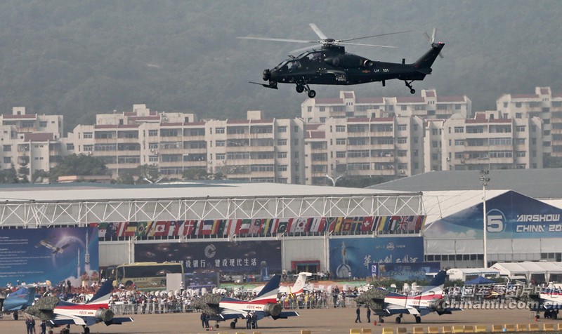 我國自主研制生產(chǎn)的武直-10武裝直升機(jī)亮相在珠海舉行的第九屆中國國際航空航天博覽會,在飛行表演中展示了這款直升機(jī)的優(yōu)良性能。