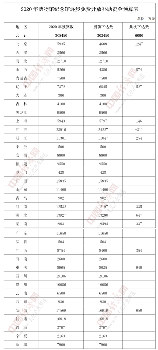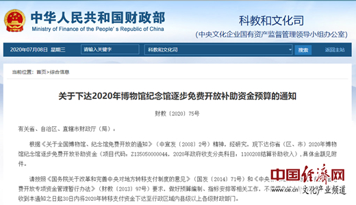 經(jīng)濟(jì)日?qǐng)?bào)-中國經(jīng)濟(jì)網(wǎng)北京7月8日訊 7日,國家財(cái)政部官網(wǎng)發(fā)布《關(guān)于下達(dá)2020年博物館紀(jì)念館逐步免費(fèi)開放補(bǔ)助資金預(yù)算的通知》(以下簡(jiǎn)稱《通知》),《2020年博物館紀(jì)念館逐步免費(fèi)開放補(bǔ)助資金預(yù)算表》同日公布。