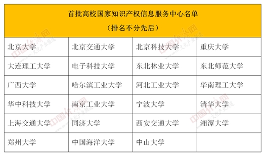 據(jù)中國經(jīng)濟(jì)網(wǎng)文化產(chǎn)業(yè)頻道記者了解,2019年3月7日,經(jīng)國家知識產(chǎn)權(quán)局辦公室聯(lián)合國家教育部辦公廳公布,北京大學(xué)等23家高校已入選“首批高校國家知識產(chǎn)權(quán)信息服務(wù)中心”名單。隨著第二批37家高校的入選,“高校國家知識產(chǎn)權(quán)信息服務(wù)中心”總體數(shù)量增至60家。