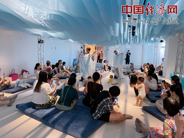 8月22日下午,在天橋藝術(shù)中心第五空間,一場沉浸式互動嬰幼兒戲劇《Ohh…Ocean!》正在上演,與其他戲劇不一樣的是,這些觀眾都是半歲至1歲的小寶寶。小寶寶們與家長一起,席地而坐,在音樂中與演員們一起感受海洋空間。天橋藝術(shù)中心第五空間運(yùn)營負(fù)責(zé)人陳莉告訴記者:“內(nèi)容和空間是雙向奔赴的。我們開始做這些空間的時候,不知道未來會有什么樣的內(nèi)容使用這些空間。直到引進(jìn)這個劇目,使空間與內(nèi)容非常好地結(jié)合了起來?!?/p>