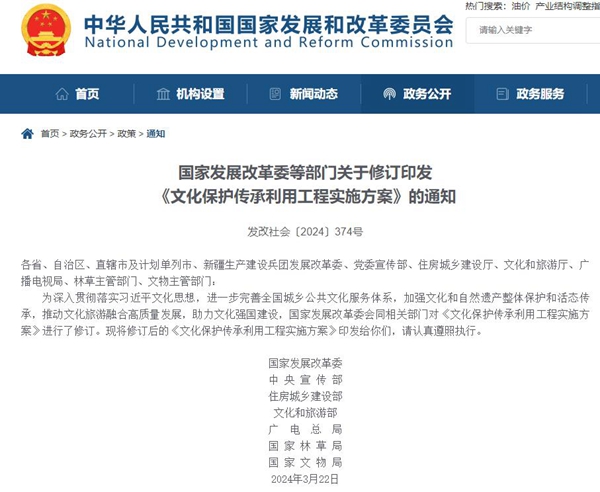 中國經(jīng)濟(jì)網(wǎng)北京4月8日訊(記者 成琪)據(jù)國家發(fā)改委網(wǎng)站4月7日消息,為進(jìn)一步完善全國城鄉(xiāng)公共文化服務(wù)體系,加強(qiáng)文化和自然遺產(chǎn)整體保護(hù)和活態(tài)傳承,推動(dòng)文化旅游融合高質(zhì)量發(fā)展,助力文化強(qiáng)國建設(shè),國家發(fā)展改革委會(huì)同相關(guān)部門對《文化保護(hù)傳承利用工程實(shí)施方案》(以下簡稱“《方案》”)進(jìn)行了修訂?!斗桨浮访鞔_,要依托國家級(jí)資源新建或改擴(kuò)建一批重大文化設(shè)施,提升公共文化服務(wù)水平,促進(jìn)優(yōu)秀傳統(tǒng)文化和寶貴自然遺產(chǎn)整體保護(hù)和活態(tài)傳承,推動(dòng)高質(zhì)量發(fā)展和創(chuàng)造高品質(zhì)生活相得益彰。