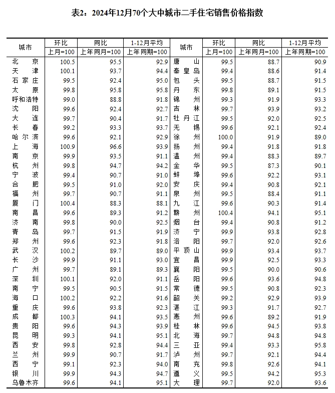中國經(jīng)濟網(wǎng)北京1月17日(記者 李方) 17日,國家統(tǒng)計局發(fā)布2024年12月份70個大中城市商品住宅銷售價格變動情況統(tǒng)計數(shù)據(jù)。數(shù)據(jù)顯示,2024年12月份,70個大中城市中,一線城市商品住宅銷售價格環(huán)比上漲,二三線城市環(huán)比總體降幅收窄;一二三線城市同比降幅均繼續(xù)收窄。