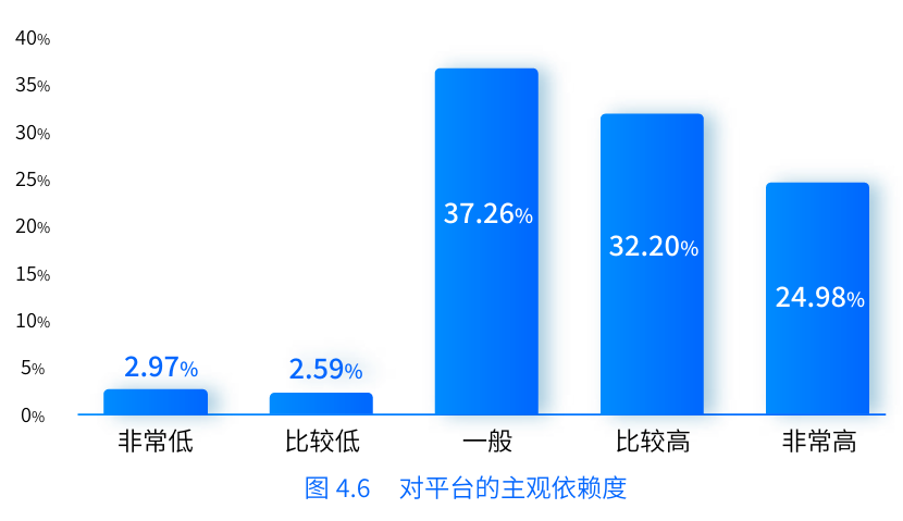 “我們在調(diào)研中發(fā)現(xiàn),貨車司機(jī)對使用數(shù)字貨運平臺的主觀依賴度還是很高的。”中國人民大學(xué)中國就業(yè)與民生研究院執(zhí)行副院長周廣肅說。報告中指出,主觀認(rèn)為自己對平臺的依賴程度較高和非常高的司機(jī)占全體調(diào)查司機(jī)的57.18 %,超過了總數(shù)的一半。