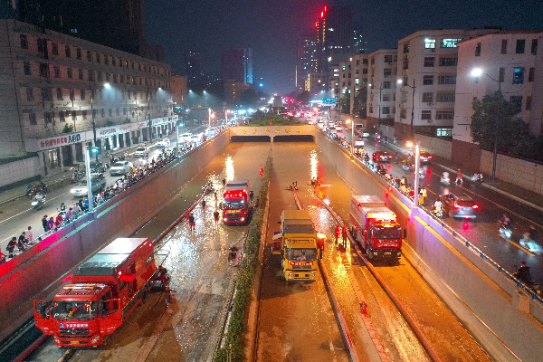 2021年7月,河南發(fā)生特大暴雨,鄭州京廣路隧道被淹。圖為中國(guó)安能救援隊(duì)伍全力開展抽排水任務(wù)。 資料圖片