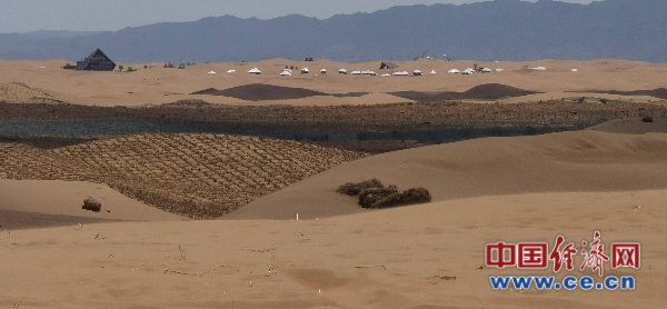 點沙成金,綠富同興。唐希明還積極引導(dǎo)當(dāng)?shù)厝朔N植沙蔥和經(jīng)濟林。“沙漠是陸地生態(tài)系統(tǒng)的重要組成部分,在防沙治沙的基礎(chǔ)上,我們更要學(xué)會利用沙漠資源,大力發(fā)展沙漠旅游、沙漠牧場、光伏發(fā)電等產(chǎn)業(yè),形成人沙和諧、沙為人用的良好局面?!痹谔葡C骺磥?,向沙漠要效益的前提,首先是要通過鎖邊治理使得周圍形成一道綠色的屏障,從而擋住風(fēng)沙。有了好的生態(tài)環(huán)境,才會有更多產(chǎn)業(yè)發(fā)展的可能。沙坡頭區(qū)旅游產(chǎn)業(yè)的快速發(fā)展就是中衛(wèi)治沙成績的有力見證。