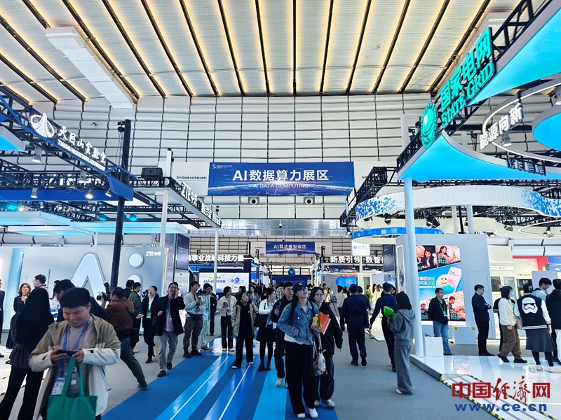 AI數(shù)據(jù)算力展區(qū)游客絡(luò)繹不絕。中國(guó)經(jīng)濟(jì)網(wǎng)記者李方攝