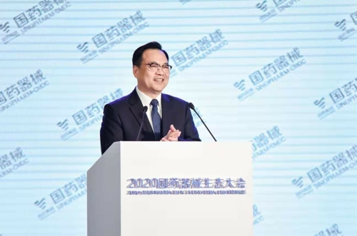 圖為國藥控股黨委書記、國藥器械董事長(zhǎng)于清明做題為《聚力打造創(chuàng)新引擎,協(xié)同構(gòu)建發(fā)展新格局》的演講。