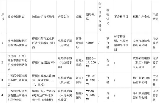 廣西柳州市市場監(jiān)督管理局通報(bào)4批次電熱暖手袋產(chǎn)品監(jiān)督抽查情況