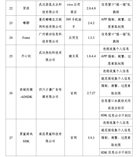 工信部稱,依據(jù)《個人信息保護(hù)法》《網(wǎng)絡(luò)安全法》《電信條例》《電信和互聯(lián)網(wǎng)用戶個人信息保護(hù)規(guī)定》等法律法規(guī),工信部持續(xù)整治APP侵害用戶權(quán)益的違規(guī)行為,在近期組織的第三方檢測機(jī)構(gòu)進(jìn)行抽查中,共發(fā)現(xiàn)27款A(yù)PP及SDK存在侵害用戶權(quán)益行為。侵權(quán)方式包括信息窗口“搖一搖”亂跳轉(zhuǎn)或誤導(dǎo)用戶滑動亂跳轉(zhuǎn)、違規(guī)收集個人信息、APP頻繁自啟動和關(guān)聯(lián)啟動、信息窗口未提供關(guān)閉或退出標(biāo)識、強(qiáng)制用戶使用定向推送功能、SDK信息公示不到位以及強(qiáng)制、頻繁、過度索取權(quán)限等,涉及小米商店語音輸入法、vivo應(yīng)用商店的聽說輸入法、App Stroe的樂播投屏等。