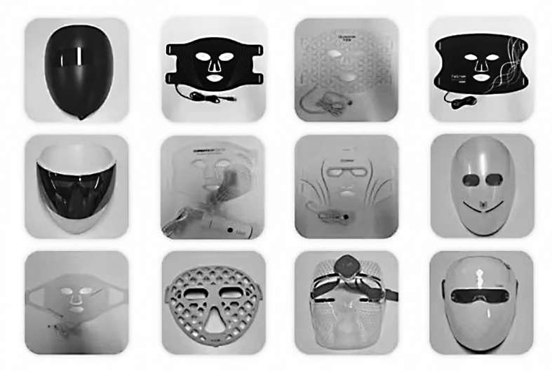 根據(jù)產(chǎn)品宣傳和相關(guān)文獻(xiàn)研究結(jié)果,LED光通常用不同顏色來代表波長區(qū)間,對皮膚具有不同的作用,例如一般認(rèn)為紅光可促進(jìn)受損皮膚修復(fù),促進(jìn)新陳代謝;黃光具有減輕局部皮膚敏感,改善紅斑和毛細(xì)血管擴(kuò)張的作用;藍(lán)光作用在表皮層,用作殺菌消炎祛痘;綠光能抑制黑色素生成等。試驗(yàn)結(jié)果顯示,12款樣品的波長差異較大,光照類型在2至7種不等,其中以紅光、藍(lán)光、黃光、紅外光為主。
