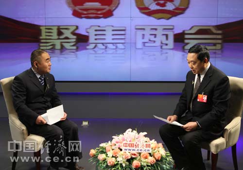 全國人大代表、江蘇洋河酒廠股份有限公司(蘇酒集團(tuán))黨委書記趙鳳琦(右)做客中國經(jīng)濟(jì)網(wǎng)(王耀峰攝影)