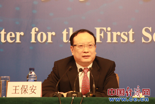 十二屆全國人大一次會議新聞中心3月14日(星期四)下午3時(shí)在梅地亞中心多功能廳舉行主題為“醫(yī)藥衛(wèi)生體制改革”的記者會。圖為財(cái)政部副部長、國務(wù)院深化醫(yī)藥衛(wèi)生體制改革領(lǐng)導(dǎo)小組辦公室副主任王保安。中國經(jīng)濟(jì)網(wǎng) 秦宇雯 攝影