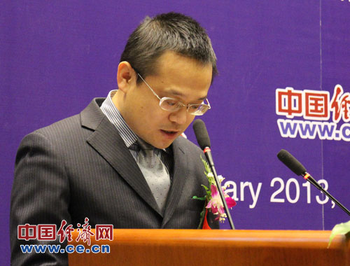 中國科學(xué)院預(yù)測科學(xué)研究中心1月26日(周五)在北京中科院數(shù)學(xué)與系統(tǒng)科學(xué)研究院舉辦“2013年中國經(jīng)濟預(yù)測發(fā)布與研討會”。圖為科學(xué)出版社經(jīng)濟管理出版分社社長陳亮致辭。中國經(jīng)濟網(wǎng)楊瀟/攝影