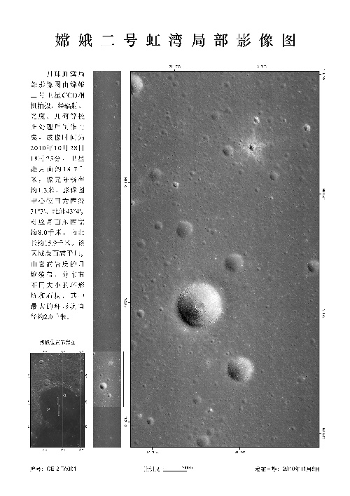 北京,2010年11月8日 國(guó)家國(guó)防科技工業(yè)局首次發(fā)布嫦娥二號(hào)月面虹灣局部影像圖 這是嫦娥二號(hào)虹灣局部影像圖(成像時(shí)間為10月28日)。